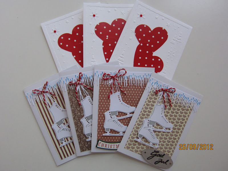 Her kan I se alle de julekort vi fik lavet tirsdag aften og jeg advarer om et monster-langt indlæg...Jeg vil se om jeg kan huske hvem der lavede hvilke kort, bær lidt over med mig, hvis det er helt ved siden af...Vi havde travlt, det gik stærkt og jeg fik vist ikke "fat" i det hele ;-) Det skal lige siges at INGEN af os havde kort med hjemmefra.